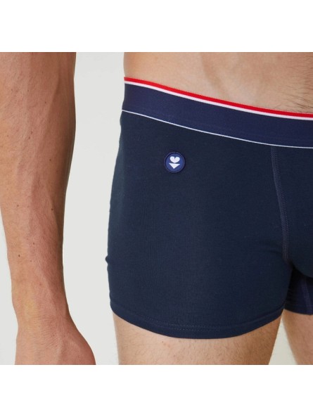 Le pack Marius Trio Plus est compose dun boxer marine uni dun boxer raye mariniere et dun boxer imprime Localove sur fond marine.