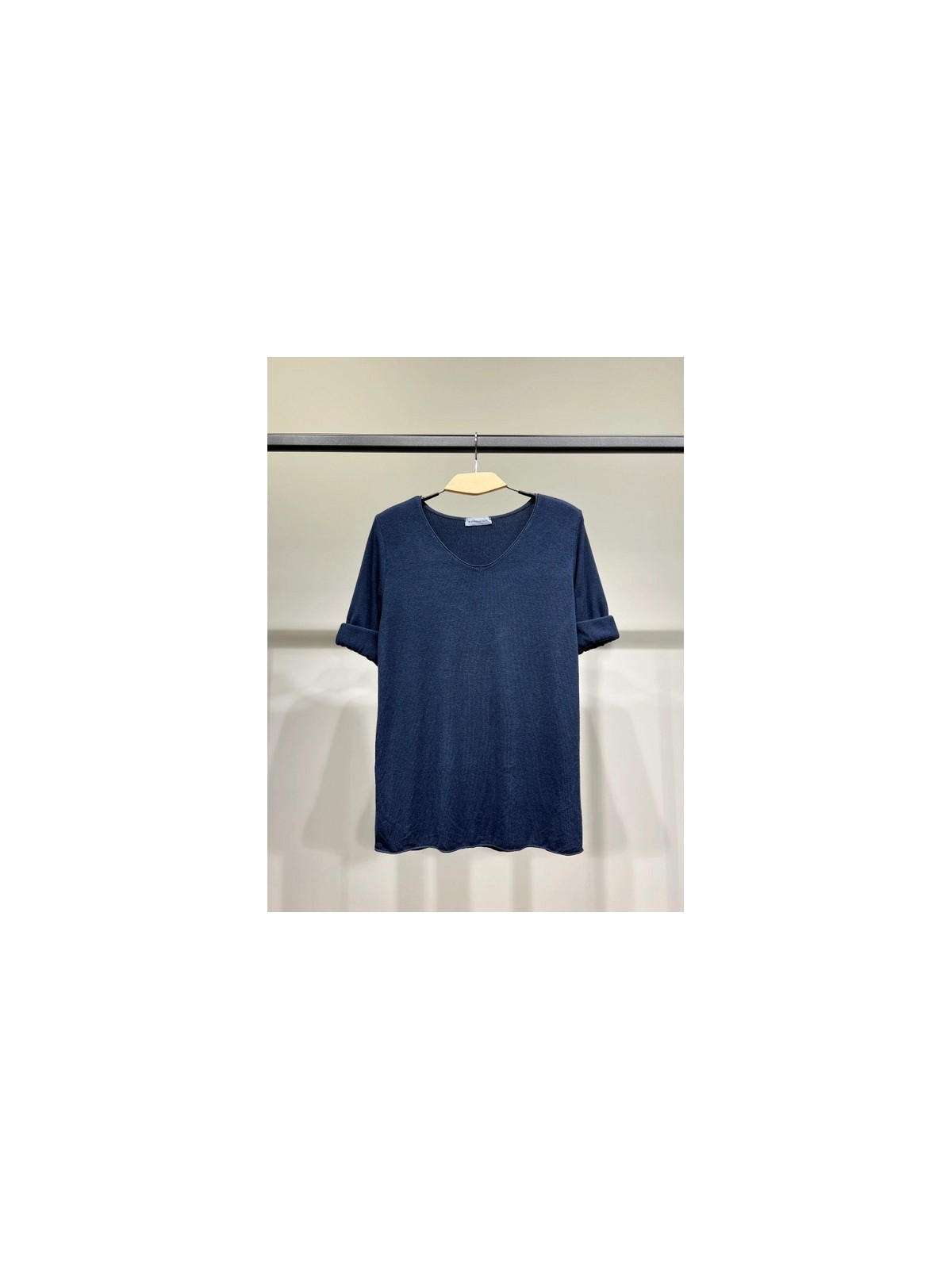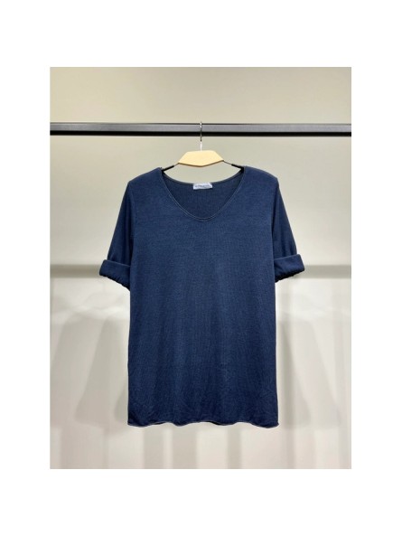 L EMOTION TEE SHIRT CONFORT MANCHE LONGUE COL V LAINE ET ANGORA BLEU MARINE